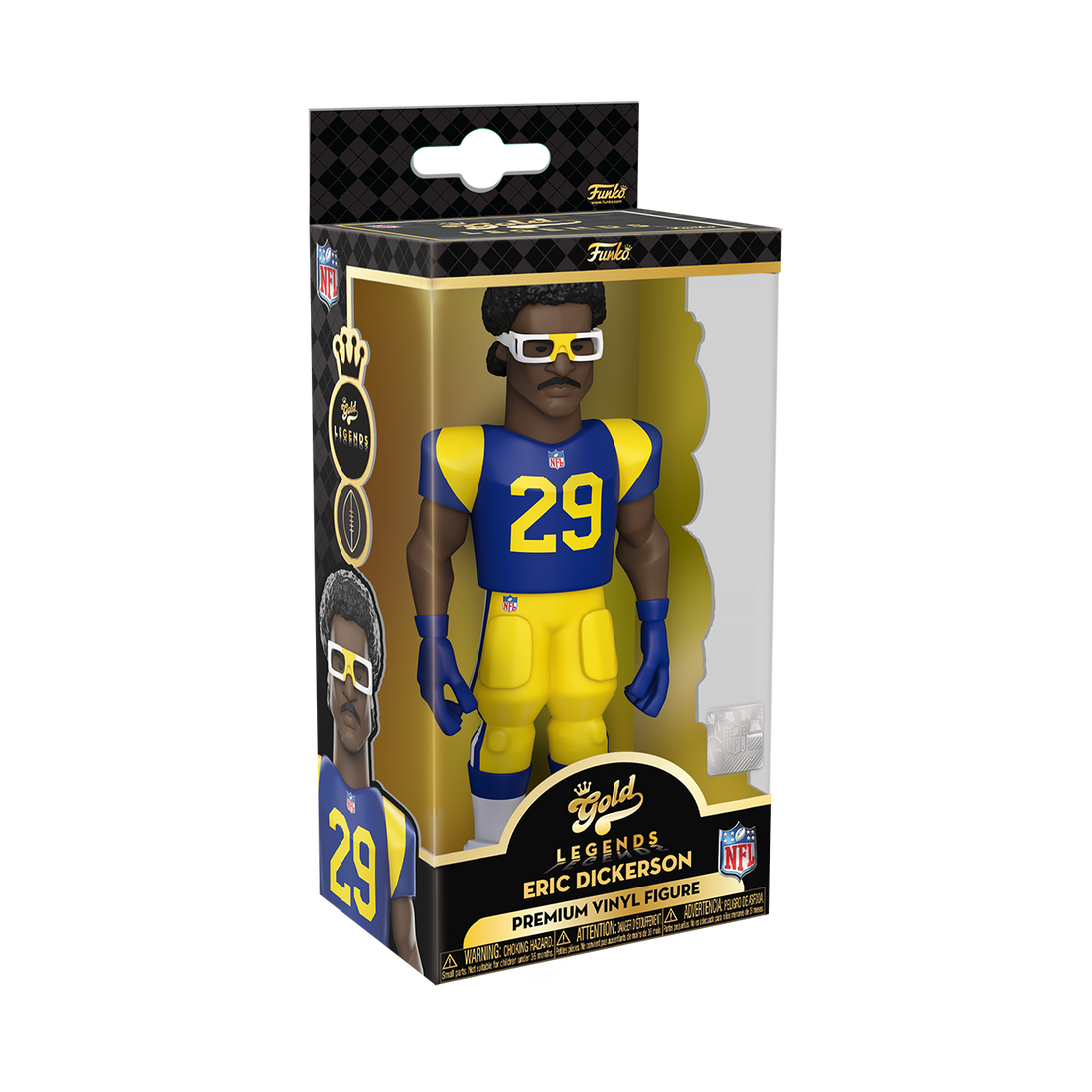 Score a touchdown for your National Football League collection with the new GOLD Eric Dickerson premium vinyl figure. This 5-inch tall collectible of Eric Dickerson has him dressed in his blue and yellow Los Angeles Rams uniform.