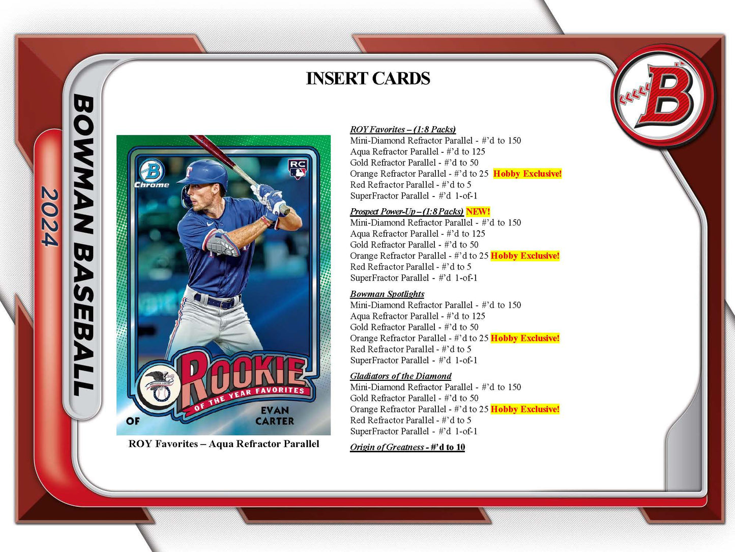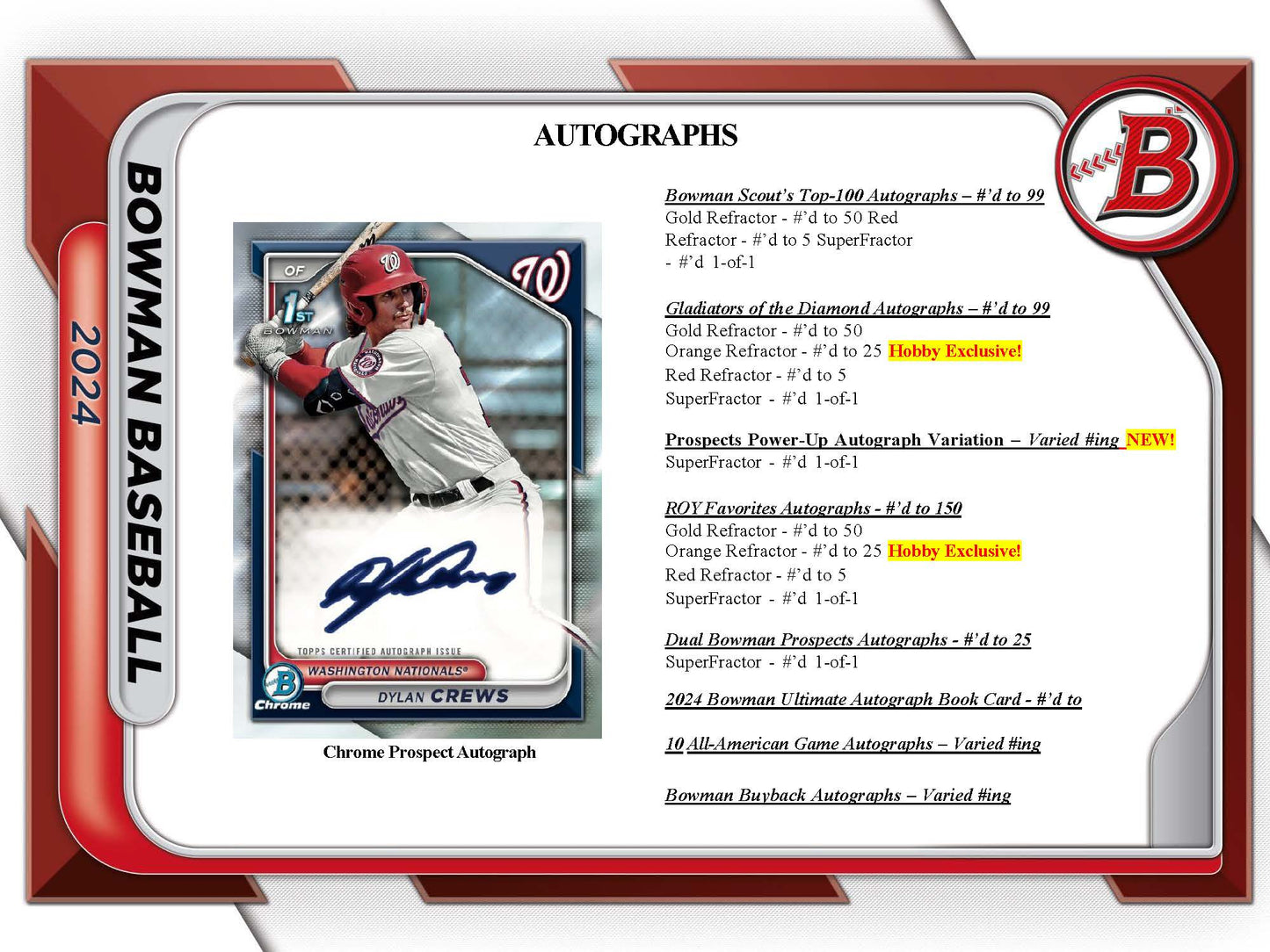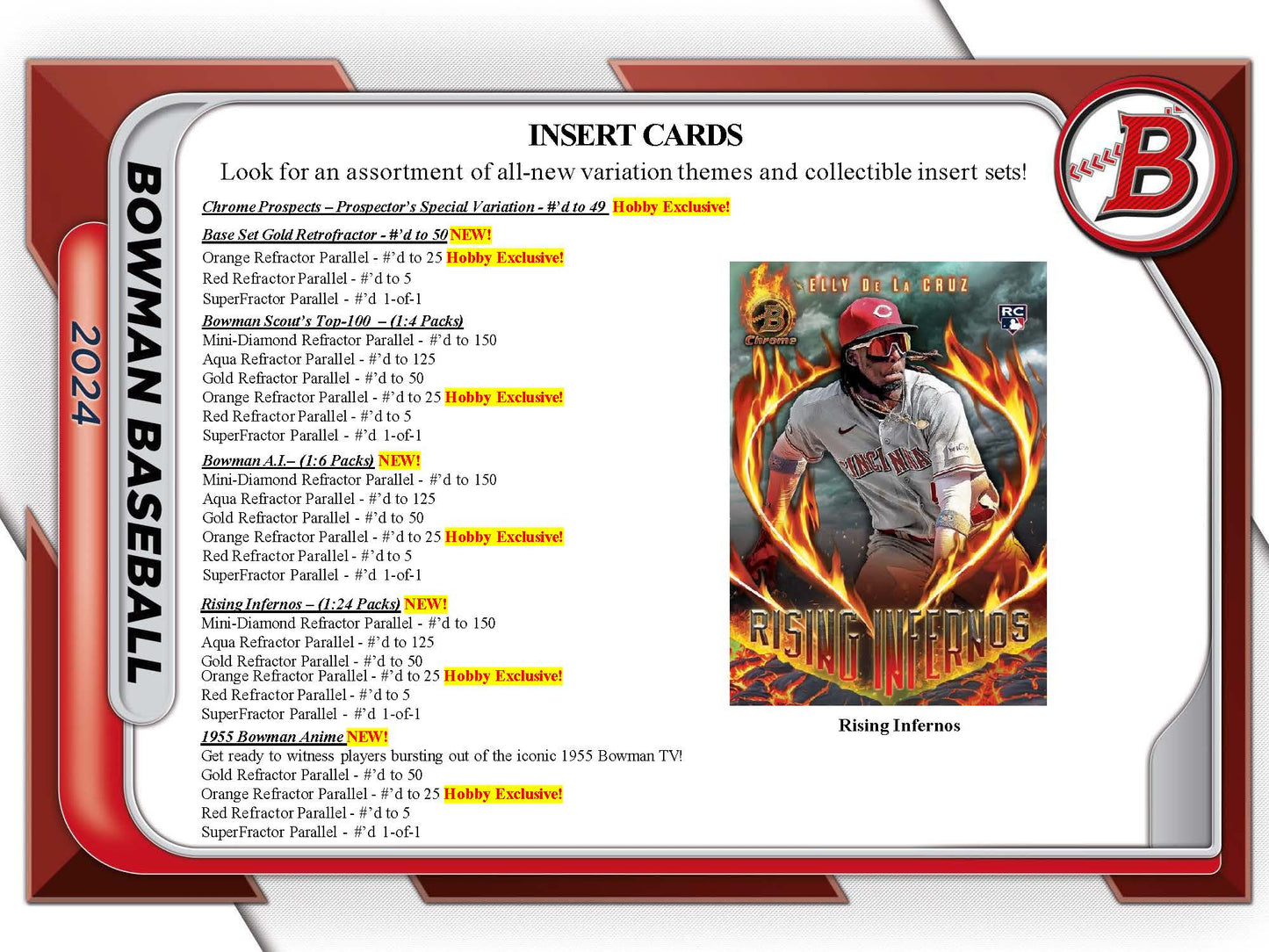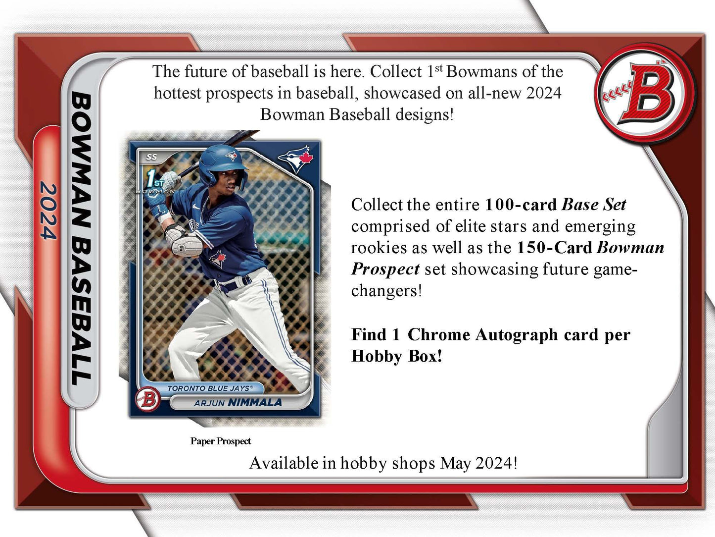 The future of baseball is here. Collect 1st Bowmans of the hottest prospects in baseball, showcased on all-new 2024 Bowman Baseball designs!