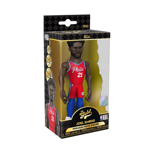 Score a slam dunk for your National Basketball Association collection with the new Funko GOLD Joel Embiid premium vinyl figure. This 5-inch tall collectible of Joel Embiid has him dressed in his red Philadelphia 76ers home game uniform. GOLD is the perfect way to commemorate some of your favourite NBA players in your collection, and each figure comes in a sleek, display-ready box that is easy to stack with other GOLD collectibles.