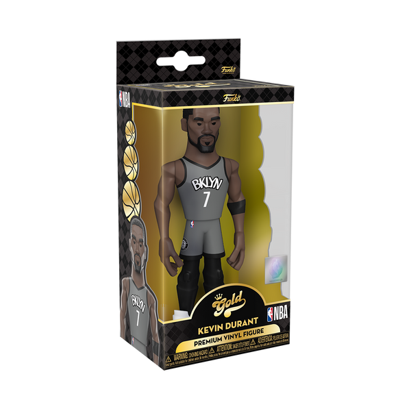 Score a slam dunk for your National Basketball Association collection with the new Funko GOLD Kevin Durant premium vinyl figure. This 5-inch tall collectible of Kevin Durant has him dressed in his Brooklyn Nets home game uniform. GOLD is the perfect way to commemorate some of your favourite NBA players in your collection, and each figure comes in a sleek, display-ready box that is easy to stack with other GOLD collectibles.